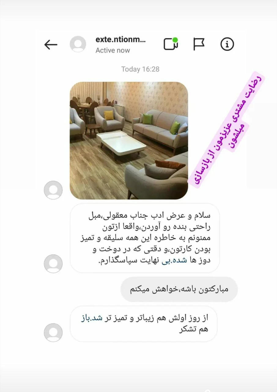 با حوصله و دقت من را راهنمایی کردند؛ حتی عکس مبل خودم را بردم و هر پارچهای که انتخاب میکردم، با حوصله و سلیقه بالا روی مدل مبل من طراحی میکردند تا بهتر تصمیم بگیرم.